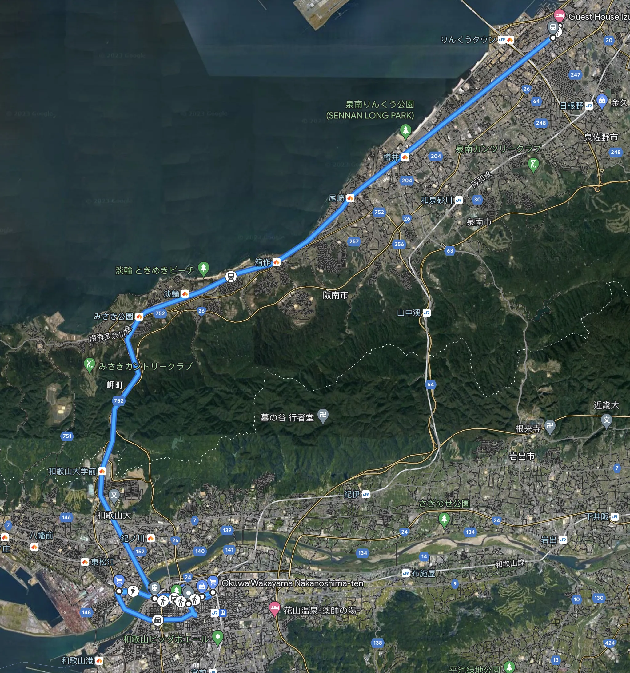 提桶跑路,从 Guest House Izumi 走路前往 泉佐野站