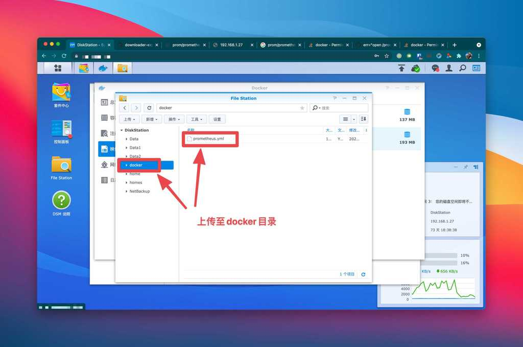 然后将此文件上传到群晖,名为docker的这个共享文件夹内(重要)