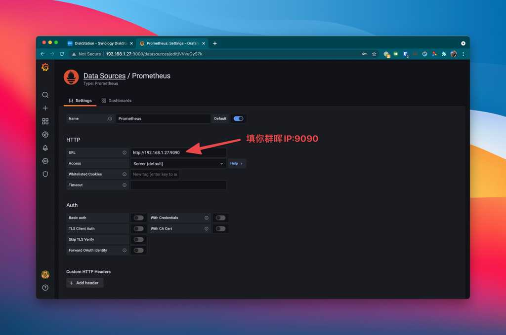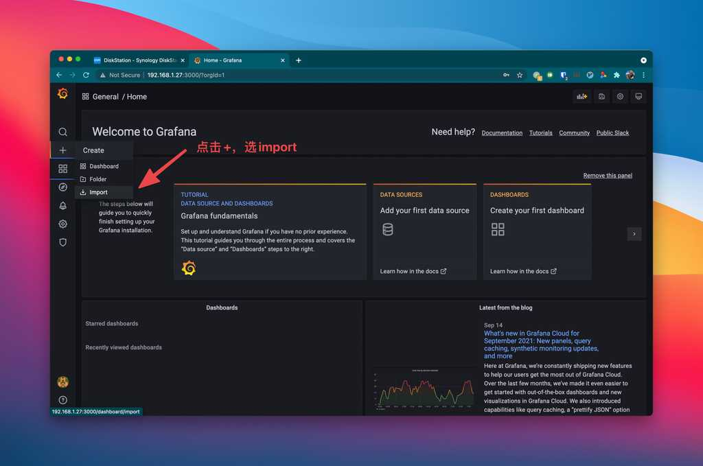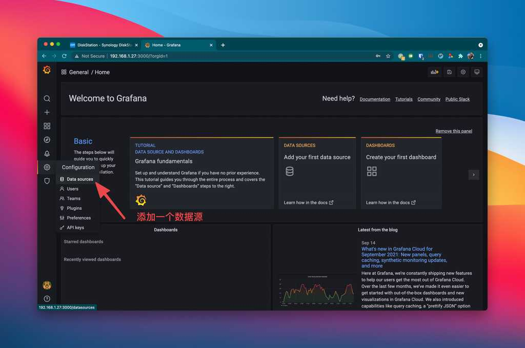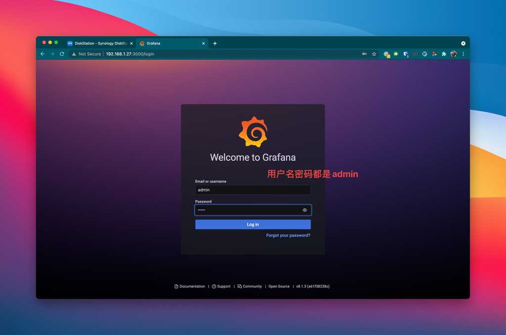 启动映像,浏览器去到群晖IP:3000看看面板有没有正确启动,用admin/admin作为用户名密码登录